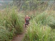 En af parkens smukke beboere: Hun Joro edderkop af den gyldne silke-spind familie. Latinsk navn: Tetragnathidae, Nephila clavata. Navnet hentyder til det gyldne spind, den laver. Edderkoppen er meget giftigpå linje med den sorte enke. |
